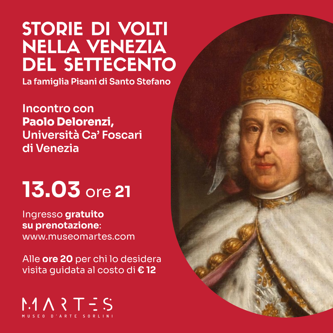 Paolo Delorenzi, professore dell’Università Cà Foscari di Venezia, condurrà il pubblico alla scoperta di storie e volti della Venezia settecentesca a partire dal Ritratto del Doge Alvise Pisani dell’illustre famiglia lagunare dei Pisani di Santo Stefano, presente nella Collezione Sorlini e da poco rientrato dopo il prestito alle Gallerie d’Italia di Vicenza.Â